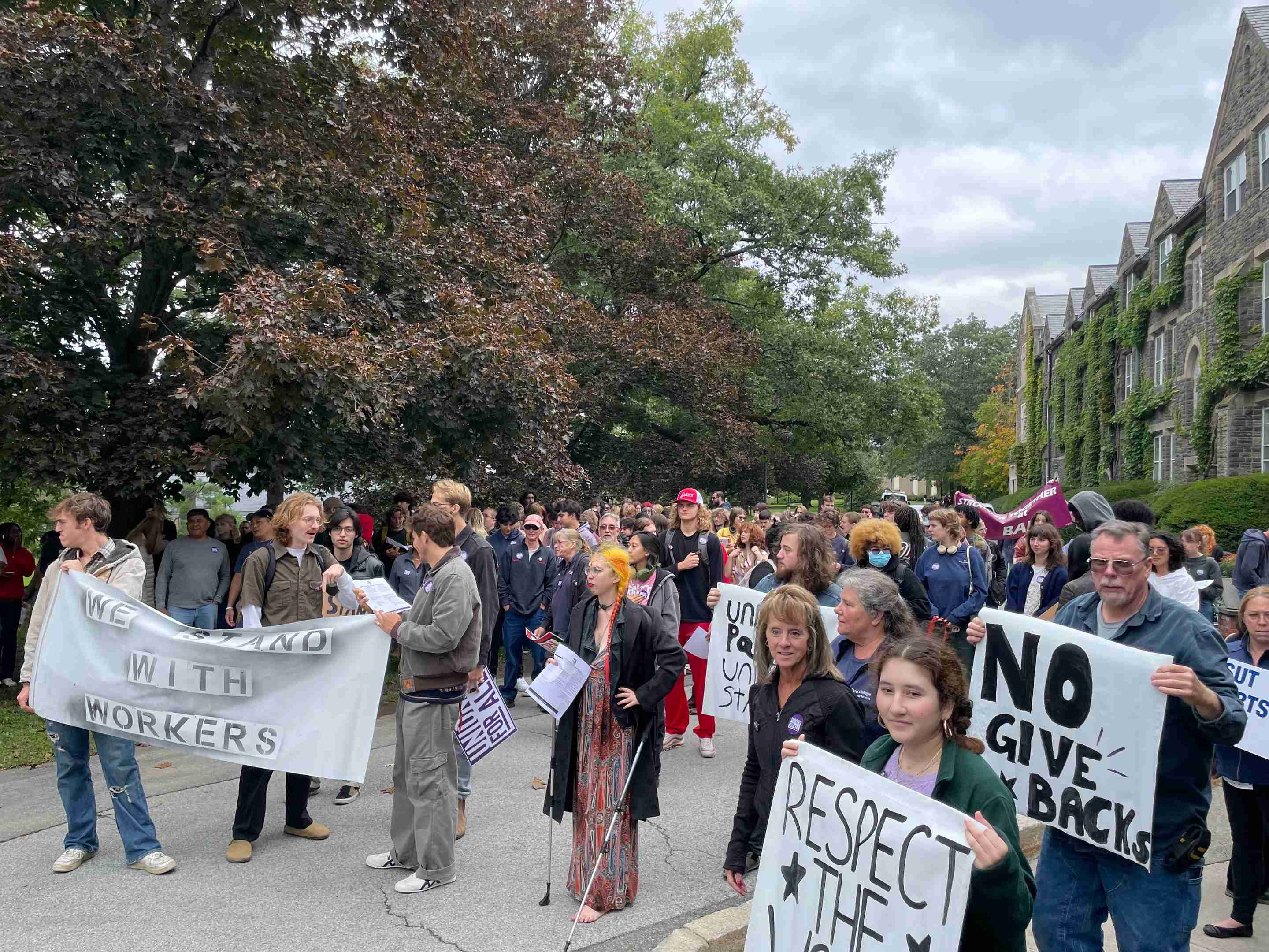 Bard College initially demanded steep concessions on individual and family health care insurance and offered only modest raises that did not reflect the higher cost of living in the Hudson Valley, along with other concessionary demands. After months of negotiations and a unanimous strike authorization vote by the SEIU members in the Building & Grounds department, the Bard administration finally dropped all of its concessionary demands and agreed to maintain 100% College-funded individual health insurance workers in both departments.