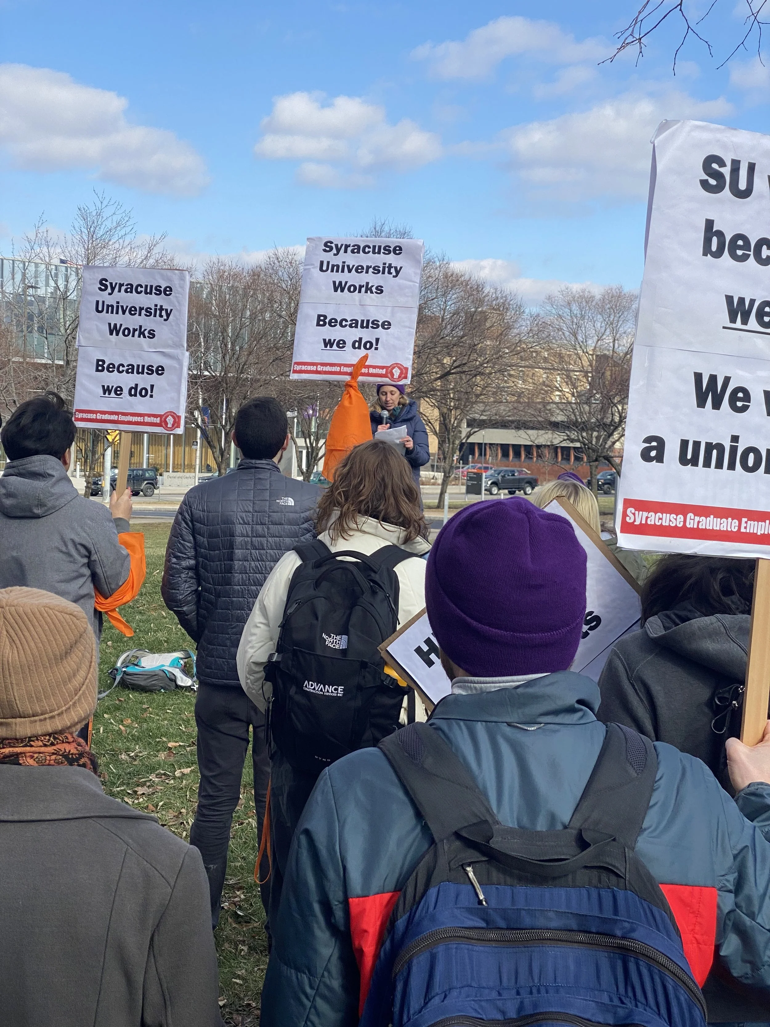 SU works, because we do! All workers at Syracuse University deserve a union, and a voice over hours, wages and conditions. Workers across SU are fighting to improve the university and by extension the city of Syracuse.